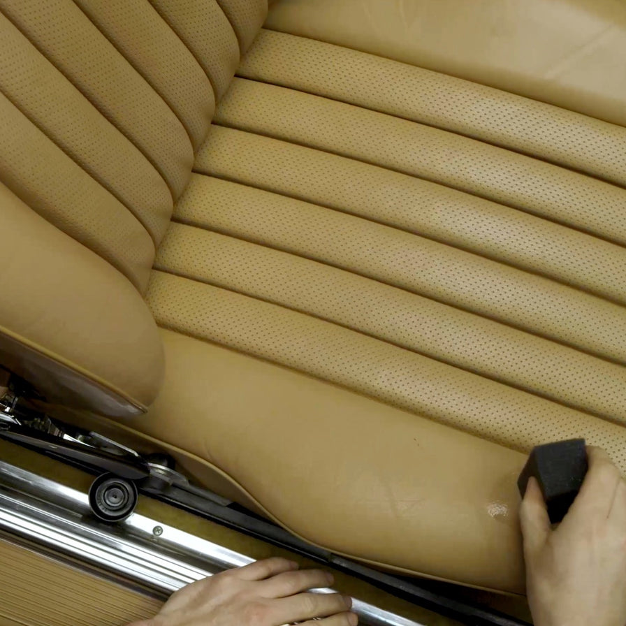 - After cleaning or tinting, apply a thin layer of Swissvax Leather Glaze carefully from seam to seam using a sponge.