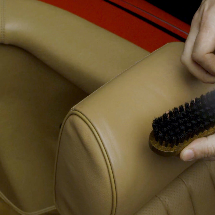 - Spray Leather Cleaner onto the Swissvax cleaning brush and work in in a circular motion.