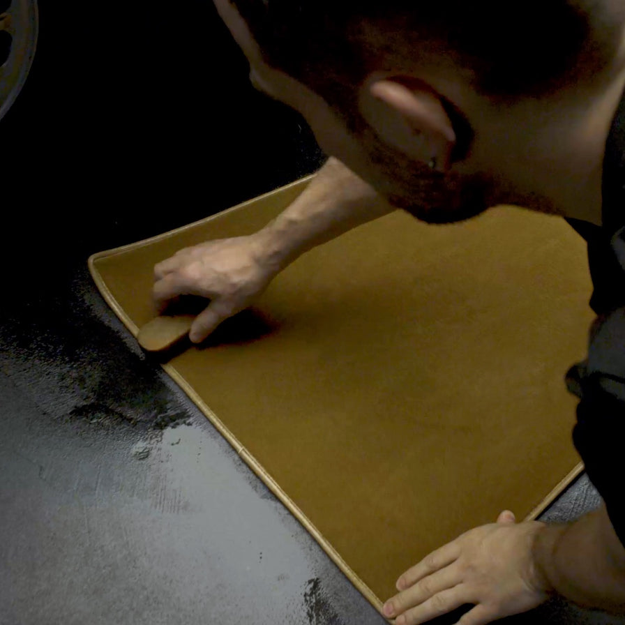 - Apply Swissvax Protecton Matt evenly with a Swissvax sponge applicator (black) and apply firm pressure.