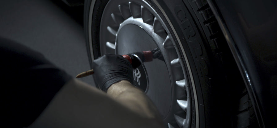 Naša guma za njegu guma, koja je također prikladna za gume za bijele zidove, zatim se raspršuje kako bi joj se dao sjaj.
